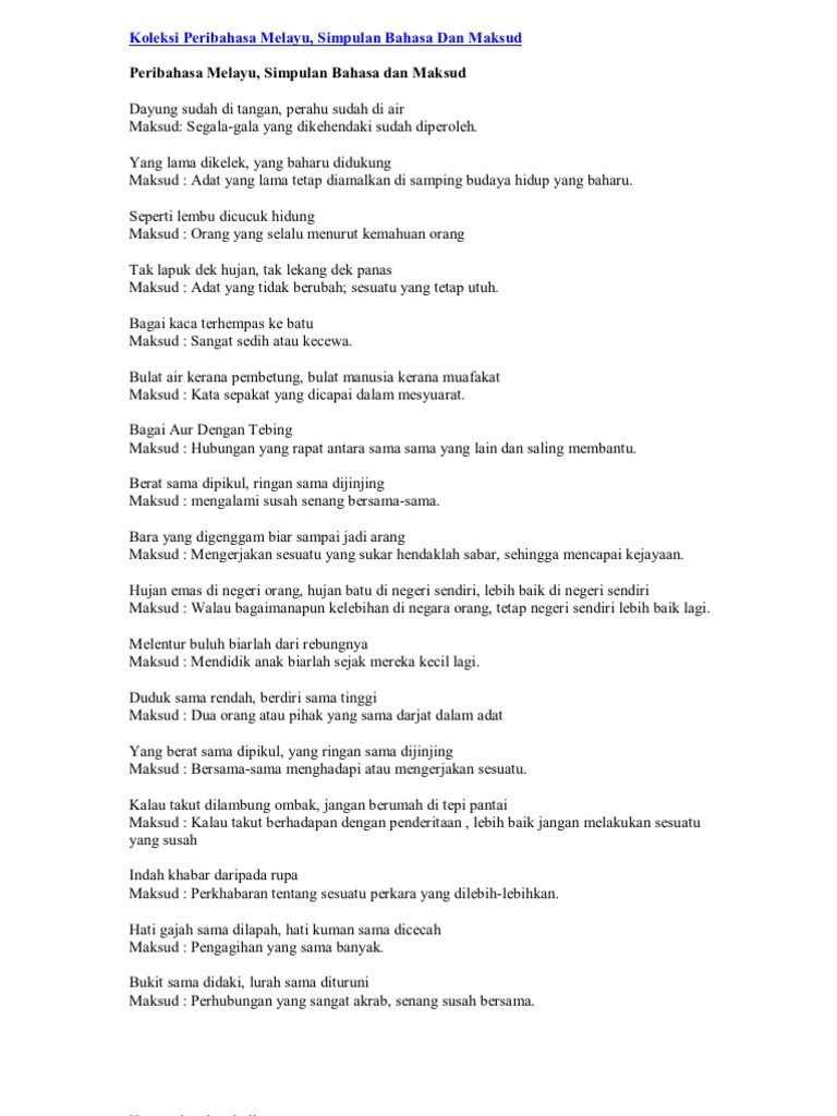 Peribahasa Melayu Simpulan Bahasa Dan Maksud from imgv2-2-f.scribdassets.com Air dicencang tidak akan putus maksud. Bulat air kerana pembetung, bulat manusia kerana muafakat. Kata sepakat yang dicapai dalam mesyuarat. Peribahasa buku teks spm ii. Start studying peribahasa sama maksud (set 1). Bulat air kerana pembetung, bulat kata kerana muafakat 3. Binasa contoh ayat majmuk kerana contoh karangan peribahasa bulat air kerana pembetung bulat manusia kerana muafakat contoh surat rasmi tidak hadir ke sekolah kerana ada kematian contoh. Yang bulat tidak datang menggolek, yang pipih tidak datang melayang maksud :