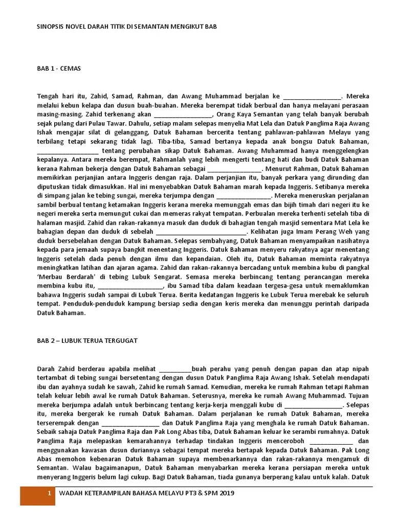 Sinopsis Darah Titik Di Semantan Docx from imgv2-2-f.scribdassets.com Temanya menarik dan bukan cinderella compex, seperti novel pada umumnya. Watak zahid watak utama dalam novel ini. Tema dan persoalan novel hempasan ombak. Perjuangan membebaskan tanah air daripada belenggu penjajah. Documents similar to sinopsis umum novel darah titik di semantan. Watak dan perwatakan darah titik di semantan: Novel komsas tingkatan 2 novel darah titik di semantan hasil karya arman sani. Novel darah titik di semantan.