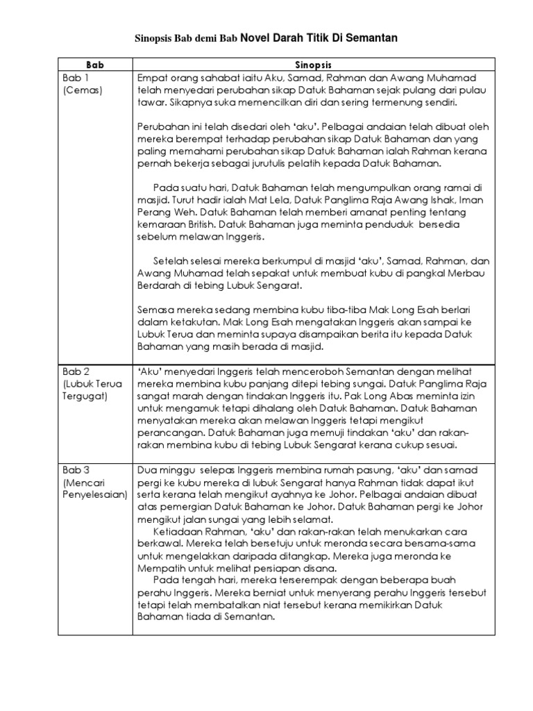 Semangat perjuangan penduduk tempatan menentang penjajah inggeris demi mempertahankan tanah air. Tetapi kaidah penulisan harus tetap diperhatikan. Darah titik di semantan tingkatan 2 komsas novel isbn. Documents similar to sinopsis umum novel darah titik di semantan. Bab 8 (darah titik di semantan) persiapan untuk membuat senjata telah dilakukan oleh datuk bahaman dan anak buahnya.